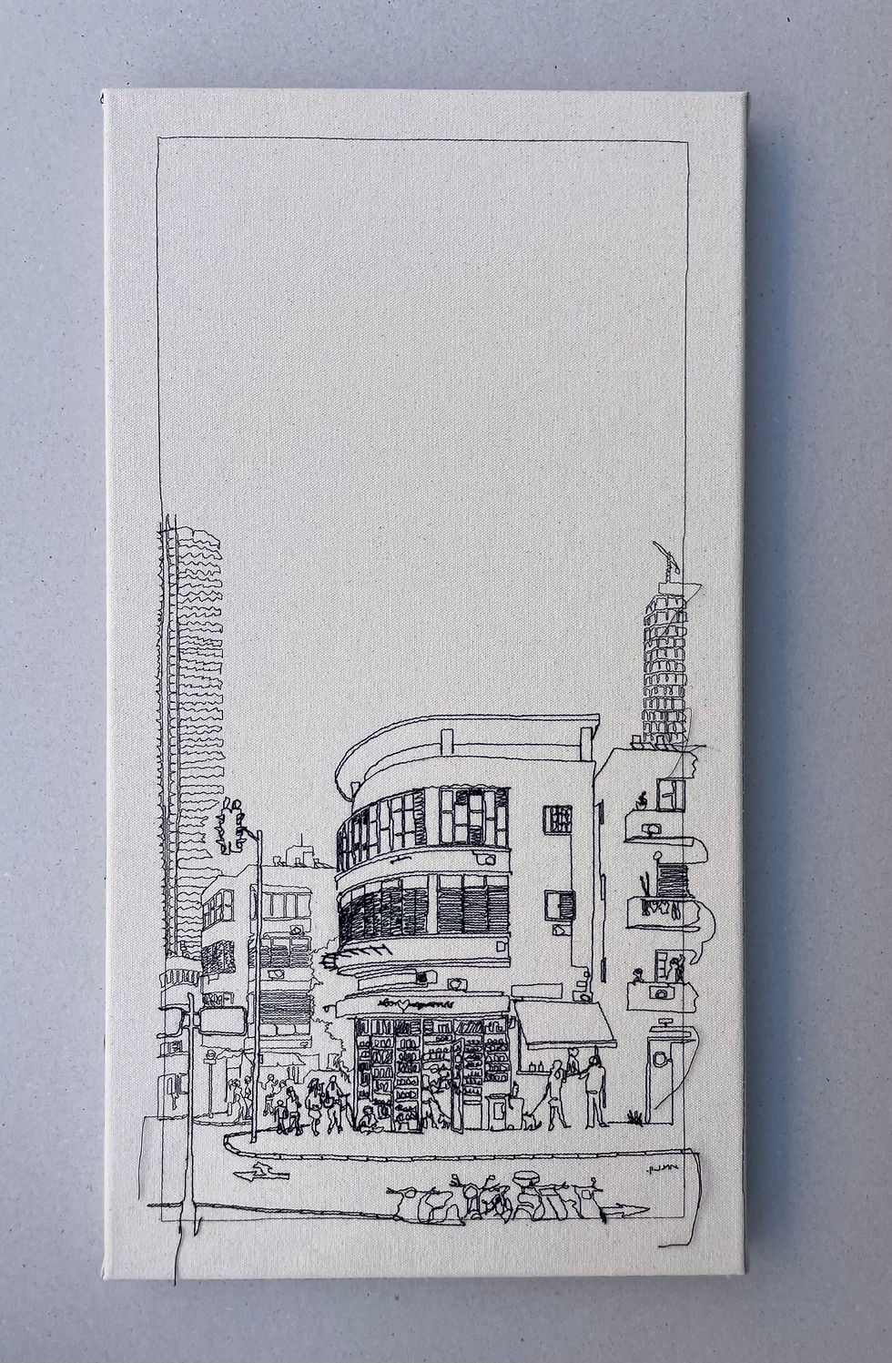 sewn sketch 25/25cm - tel aviv streets. Olive canvas